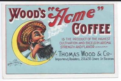 Title (ebay affiliate link): VICTORIAN TRADECARD ADVERTISING WOOD'S ACME COFFEE,MAN IN TURBAN DRINKING COFFEE