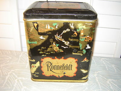 Title (ebay affiliate link): A LARGE SCARCE RONNEFELDT TEA TIN SHOWING WORLD TEA MAP 9" X 11" HINGED LID