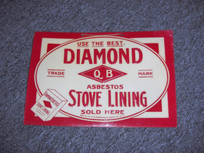 VINTAGE ADVERTISING TIN SIGN DIAMOND QB ASBESTOS STOVE LINING SOLD HERE OLD