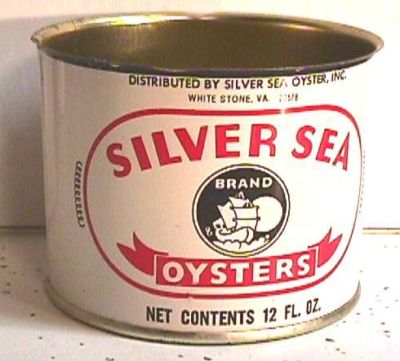 Title (ebay affiliate link): 12 OZ. SILVER SEA OYSTERS CAN OYSTER TIN WHITE STONE VA. SILVER SEA OYSTER CO.