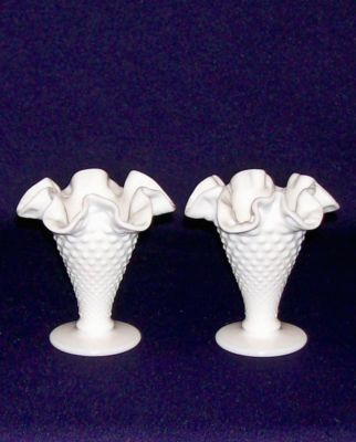Title (ebay affiliate link): TWO VINTAGE FENTON MILK GLASS HOBNAIL 4 INCH 3952 VASES DOUBLE CRIMPED