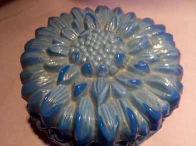 EAPG OPAQUE BLUE MILK SLAG GLASS SUNFLOWER POWDER JAR