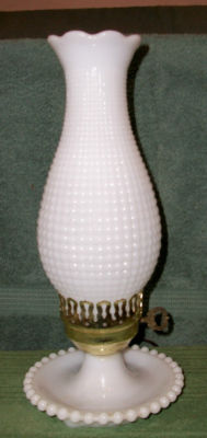 Title (ebay affiliate link): VINTAGE WHITE MILKGLASS HOBNAIL PATTERN AND GOLD BRASS HURRICANE TABLE LAMP
