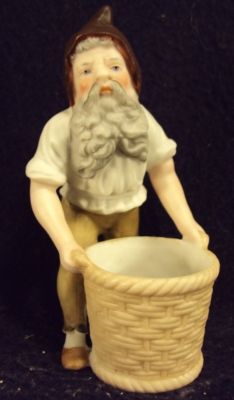 German bisque matchsafe gnome elf man dwarf toothpick figural vase