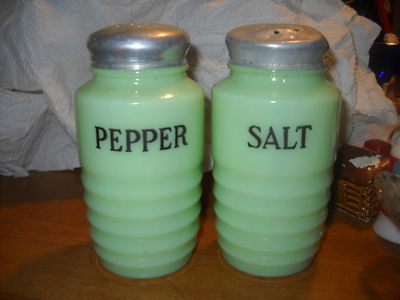 Set of Jadite Salt and Pepper shakers Vintage  Jade Glass Green jar