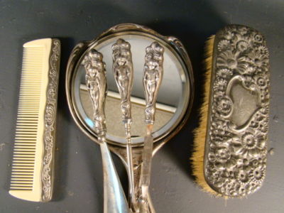 VICTORIAN Antique ART NOUVEAU Angel GROOMING Set MIRROR