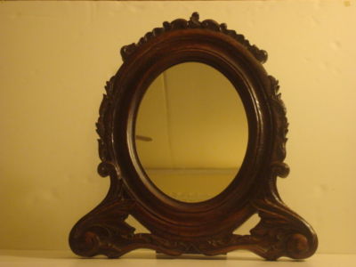 ANTIQUES ORNATE OVAL WOOD CARVED MIRROR OR PICTURE FRAME.