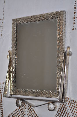 Vintage, Shabby Silver, Double Sided, Stand Up Tilt Mirror On Stand