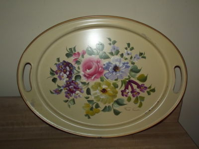 VINTAGE HAND PAINTED TOLEWARE METAL NASHCO TRAY-SIGNED