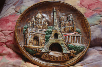 Vintage Paris WOOD CARVED PLAQUE PLATE GERMANY