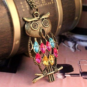 Title (ebay affiliate link): Christmas Gift Vintage Antique Colorful Crystal Owl Long Necklace Jewelry WFN62
