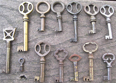 Title (ebay affiliate link): 13pc KEY LOT antique HOLLOW BARREL SKELETON cast iron BRASS cabinet FURNITURE