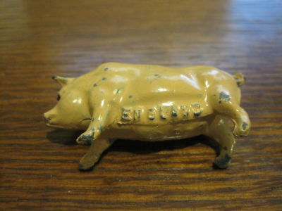 vintage lead metal toy farm painted pig ENGLAND HILL & Co.