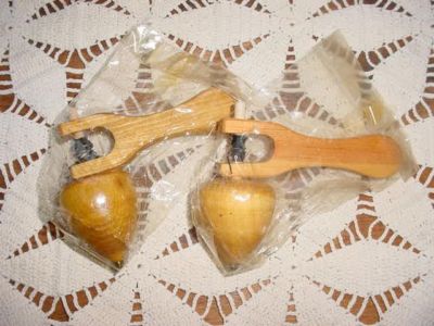 2 Vintage Wooden Wood Spinning Top Toy NEAR MINT!