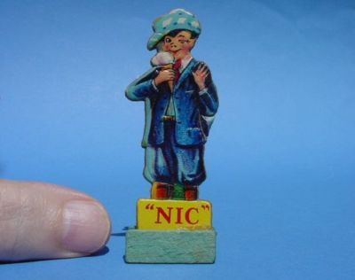 Title (ebay affiliate link): RARE 1930'S "NATIONAL ICE CREAM" MINIATURE DIECUT STAND-UP SIGN, BOY EATING CONE