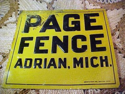 Title (ebay affiliate link): Old Vintage Yellow & Black Page Fence Sign Adrian, Michigan