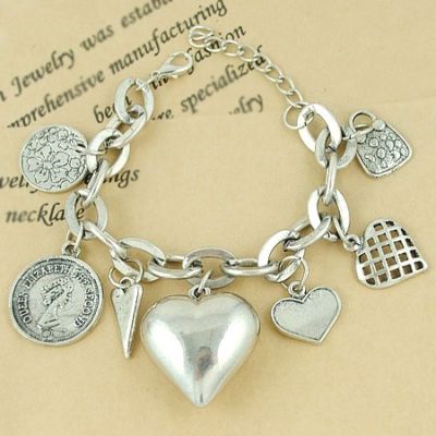 Title (ebay affiliate link): B47 VINTAGE STYLE ANTIQUE SILVER CHAIN w/ LARGE HEART & COIN BRACELET