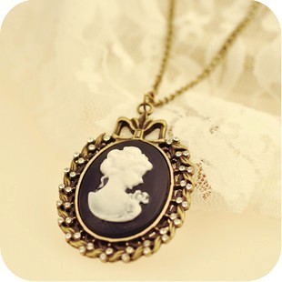 Title (ebay affiliate link): N444 ANTIQUE BRONZE FLOWER FRAME w/ WHITE LADY BUST RELIEF PENDANT NECKLACE