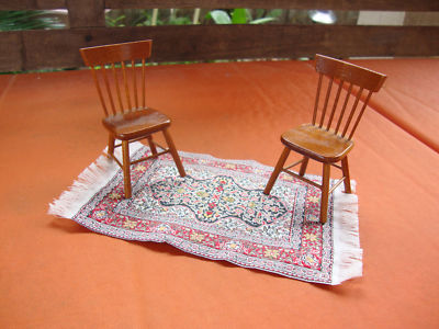 Title (ebay affiliate link): Antique Doll House Miniature Wooden 2 chairs & Silk Carpet 1:12
