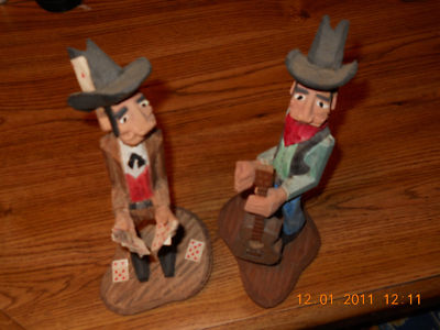 Two Cowboy Western Folk Art Wood Carvings by Todocio