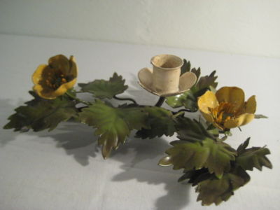 Title (ebay affiliate link): Vintage Shabby Floral Metal TOLEWARE CANDLE HOLDER~Chic Handpainted Roses ITALY