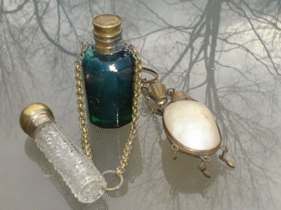 LOT OF 3 ANTIQUE PERFUME SCENT BOTTLE FLASK VICTORIAN