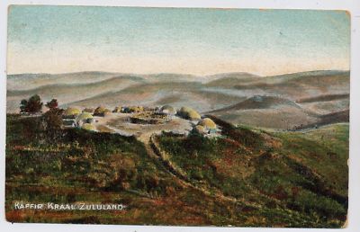 KAFFIR KRAAL ZULULAND AFRICA 1905 POSTCARD