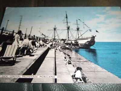 Title (ebay affiliate link): Vintage Dennis Blue Postcard MOBY DICK SHIP and Morcambe Central Promenade c1965