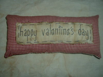 Title (ebay affiliate link): PRIMITIVE VALENTINE STITCHERY PILLOW-HAPPY VALENTINE'S DAY