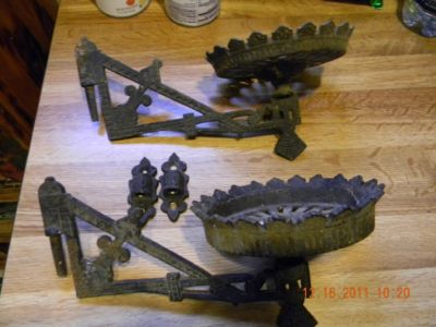 Title (ebay affiliate link): ( 2 ) VINTAGE CAST IRON, WALL MOUNTED, OIL LAMP HOLDER
