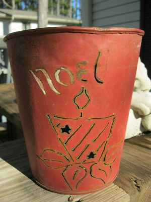 Title (ebay affiliate link): Antique Red Sap Bucket Metal Christmas Luminary Canada Handmade Primitive #4