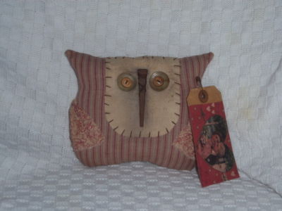 Title (ebay affiliate link): Primitive Owl Doll~Red Ticking~Tuck/Ornie/Bowl Filler~Valentine