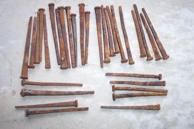 [28] ANTIQUE HAND FORGED SQUARE IRON NAILS.