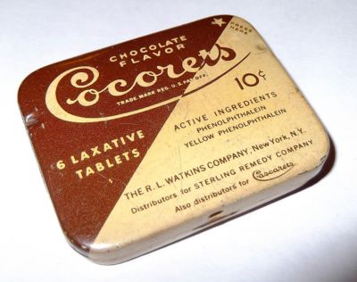 COCORETS CHOCOLATE LAXATIVE TABLETS TIN 1920/30'S FULL
