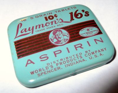 LAYMON'S ASPIRIN TABLET TIN SPENCER IND 1940/50'S #5