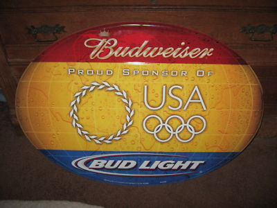 Title (ebay affiliate link): Budweiser Large Metal Sign Proud Sponsor of USA Olympic Team - Bud Light