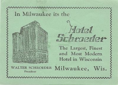 HOTEL SCHROEDER luggage label (MILWAUKEE)