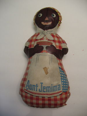 Title (ebay affiliate link): 1950's "Aunt Jemima" Quaker Oats stuffed Plastic Oil Cloth Advertising Doll !