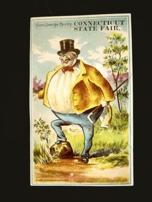 Title (ebay affiliate link): 1891-Victorian Trade card="VEGGIE"-ORANGE Man=State FAIR & HORSE RACE=Meriden-CT