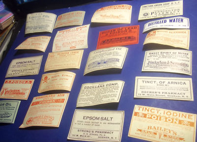 Title (ebay affiliate link): ANTIQUE LOT OF 50 POISON MEDICINE BOTTLE LABELS W/ FORMALDEHYDE ETHER LAUDANUM+