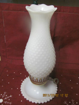Title (ebay affiliate link): BEAUTIFUL ANTIQUE FROSTED WHITE MILKGLASS HOBNAIL VANIETY LAMP-BRASS KEY SWITCH