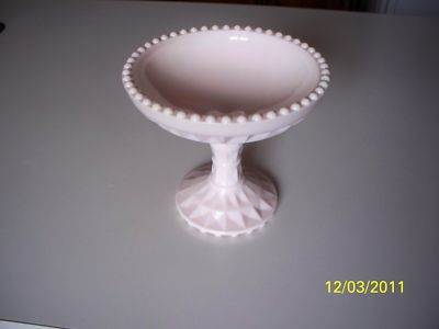 Title (ebay affiliate link): Rare Vintage Opaque Pink Milk Glass Compote Jeanette Windsor Diamond Pattern
