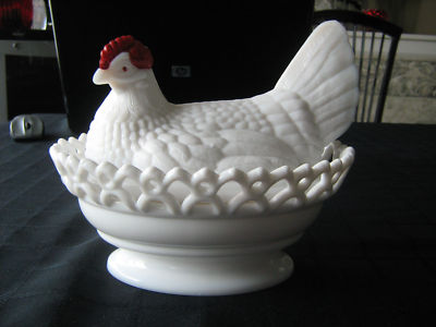 Title (ebay affiliate link): SUPERB VINTAGE Westmoreland WHITE Milk Glass HEN on Nest EXCELLENT