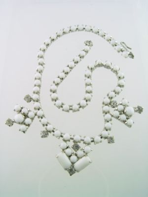 VINTAGE MID CENTURY MILKGLASS RHINESTONE NECKLACE