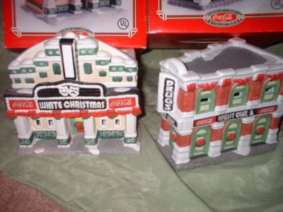 Title (ebay affiliate link): Lot 2 Coca Cola Christmas Village Buildings Night Owl Drug Store Movie Theater