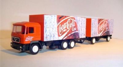 1) Coca Cola truck and trailer MAN F90 Scale HO 1:87 same Herpa Wiking