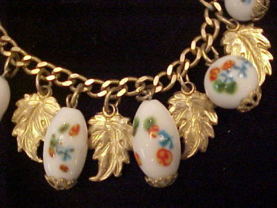 Title (ebay affiliate link): VINTAGE~RETRO~white milk glass~floral ART GLASS~gold tone-link bracelet~exc cond