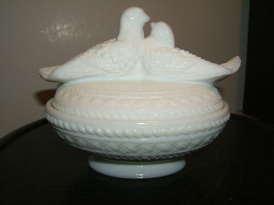 Title (ebay affiliate link): Westmoreland Milk Glass covered dish, 2 doves, super heavy, vintage