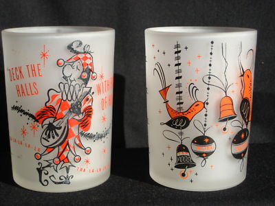Title (ebay affiliate link): 2 PCS SIGNED GAY FAD STUDIO HAND PAINTED CHRISTMAS JUICE DRINKING FROSTED GLASS