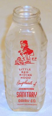 Title (ebay affiliate link): Vtg JOHNSTOWN PA SANITARY DAIRY CO Glass LITTLE RED RIDING HOOD 6.5" Bottle EXC+
